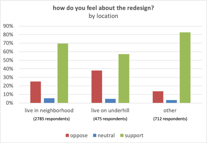 All in all, the results mirror other surveys done before the endlessly surveyed bike boulevard was completed. A 2021 DOT survey found that 86 percent of respondents were in favor of making permanent changes to Underhill. After Adams paused the project, the Prospect Heights Neighborhood Development Corporation got over 2500 signatures on a petition asking for the administration to finish it.