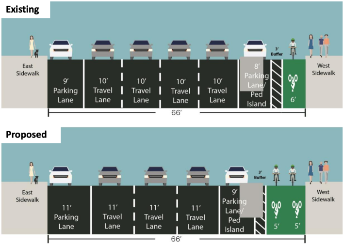 Bike volumes have increased 21 percent on weekdays and 54 percent on weekends between 2019 and 2024 on the strip, the agency said, and the avenue is already down to three lanes to the north and south of the project anyway, making it low-hanging fruit to balance the roadway.