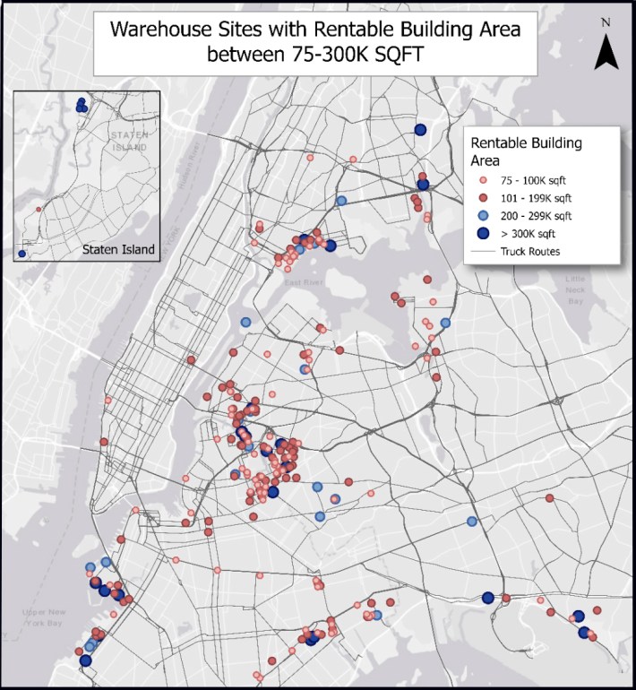 The roughly 500 warehouses that are over 50,000 square feet comprise 40 percent of total warehouse space, but are believed to produce far more pollution than the remaining 7,500 smaller warehouses. A big warehouse causes more than 11,000 truck trips per year, based on national estimates that are almost certainly lower than the reality in the city, where such warehouses have sprung up quickly during the e-commerce boom, according to the DEP.