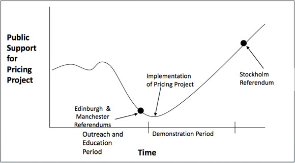 You know about the valley, right? It’s that well-documented place where all congestion pricing schemes — from London to Stockholm to Singapore — briefly dwelled in the period between the tolls were approved (“Boo!” screamed the drivers) and when they went into effect (“Boo!” screamed the drivers).