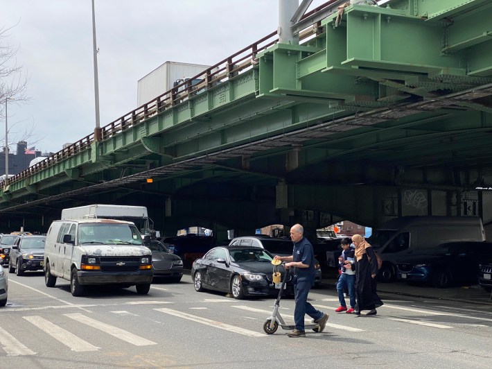 DOT won’t move forward this year at all on an overhaul of the chaotic speedway under the elevated Brooklyn-Queens Expressway, according to Community Board 7 District Manager Jeremy Laufer, who relayed an update from an agency liaison last month.