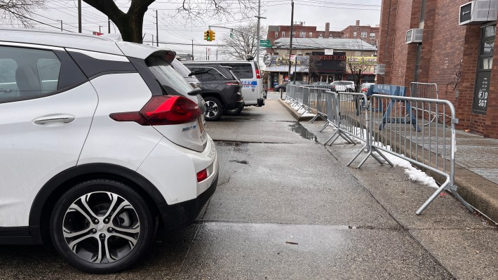 The initial concerns over parking from the community board were due to the rampant illegal parking on that stretch of Coney Island Avenue. Officers from the nearby 61st Precinct stationhouse park their personal cars on the sidewalk and all over the curb. And car-centered businesses double- and triple-park along the avenue. But instead of asking for more enforcement, the board and Vernikov instead asked for less housing.