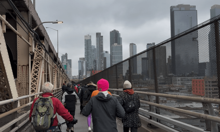 Activists Walk the Queensboro Bridge to Demand More Space for Pedestrians, But Lane Reverts to Cars Anyway