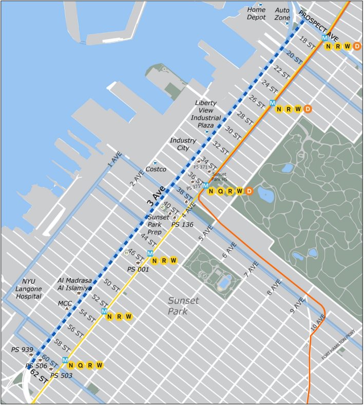 “I live within 10 blocks of Industry City and yet never go there because of how incredibly hostile Third Avenue is to bicycles (my main form of transport). There is NO safe bike infrastructure in this area,” one public commenter told DOT.