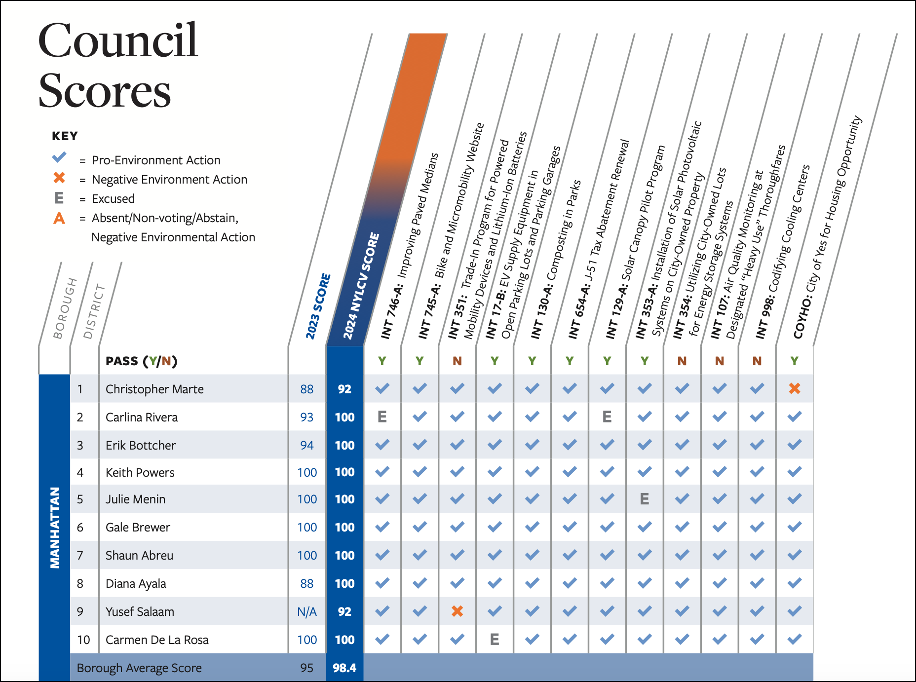 She said that NYLCV’s endorsements do have a “slight incumbent bias” so as to reward office-holders “who have sided with us” and to better “cultivate relationship” with officials. She said that although Marte’s score dipped from 100 percent in 2022 to 88 for 2023, he has been a standout on parks issues that are important to the League.