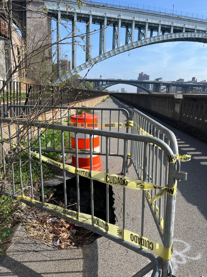 - Walking north along the Hudson River Greenway, Saunterers will observe state-of-the-art paths in Midtown that give way to major maintenance and resilience issues further uptown. When they reach 181st Street, they will be forced to take a two-mile detour on city streets due to the latest in a series of sinkholes that has closed that section of the Greenway three times in the past two years. The Greenways Coalition and other advocates have called for long-term resiliency improvements to prevent further sinkholes, as well as the development of a waterfront path to avoid the sinkhole-prone upper path.