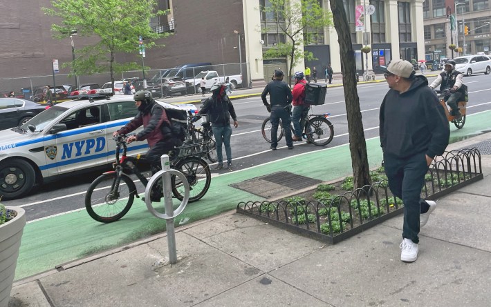 The NYPD said the new move is in response to complaints about e-bikes, which are mostly used by the city’s delivery workforce, but the agency has not backed up its claim by providing any data. The new enforcement push has resulted in cops pouncing on oncoming cyclists and entrapping delivery workers using popular bike lane routes, as Streetsblog reported.