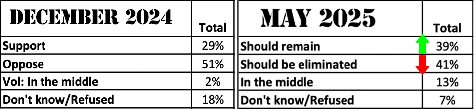 Admittedly the wording in the polls wasn’t exactly the same (and may reflect some local opposition to the president): In May, Siena asked, “Gov. Hochul says that congestion pricing in Manhattan is working, reducing traffic and raising revenue for the MTA, and it should remain. President Trump says that congestion pricing is nothing more than an unfair tax on working commuters, and it should be eliminated. Do you think congestion pricing should remain, be eliminated or [are you] in the middle.”