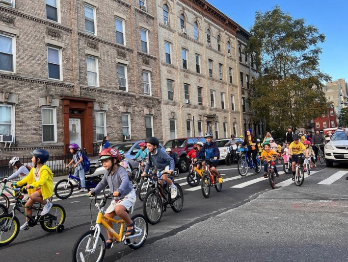 The Brooklynites also lead a regular bike bus to the school, which has galvanized several families into pushing for a safer streetscape.