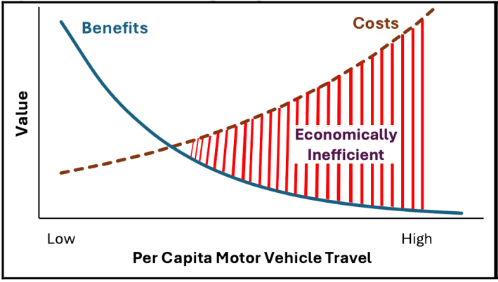 Some vehicle travel is very productive, but a growing portion is economically inefficient — its costs exceed its benefits. This reduces prosperity.
