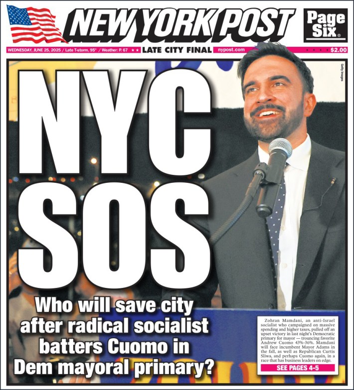 Tthe Post is also flat out making shit up: Apparently elites are so “worried” about Mamdani’s impending victory that they flooding brokers with calls to put their fancy apartments on the market. On the plus side, New Jersey is courting the traitors, according to a report in the conservative website Save Jersey. Maybe there should be a new reality show: “No Deal or Deal, NJ?”