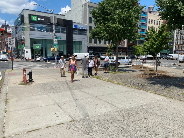 Pedestrians make up 64 percent of the streets users, but get only about 40 percent of the streetscape on paths between 12-20 feet wide, according to DOT. At the Bowery intersection pedestrians get a measly 10 percent of the streetscape, despite outnumbering drivers three to one.