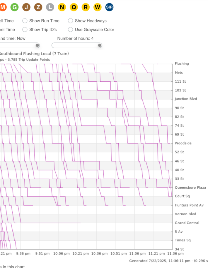 But then … disaster struck. The subway had a truly epic meltdown, with 7 trains going station to station (with 10-minute delays in between) and never making it to Manhattan for more than two hours, as Nolan Hicks shared with his stuck colleagues: