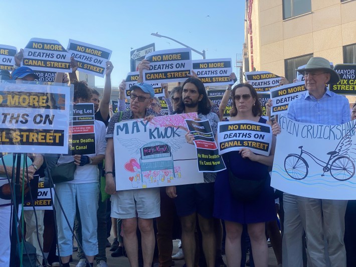 At a rally on Wednesday, family and friends of victims of the latest preventable deaths called on the city to finally redesign Canal Street to be less of a car sewer after more than two decades of studies, including one delayed effort from two years ago to add more pedestrian and bike space.