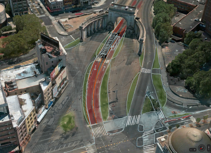 The lanes below could instead become a bike and pedestrian greenway, and set of bus lanes for a new inter-borough bus line, said King, who drew up plans for a possible revamp in 2021.