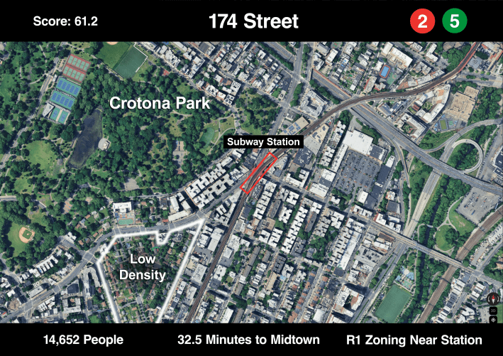 And SCYTHE only takes into account subway stations, not Metro-North or LIRR stations, where density (such as at some of the eastern Queens stations) is low and travel times to Midtown Manhattan are short. Perhaps a future SCYTHE analysis will harvest that housing.