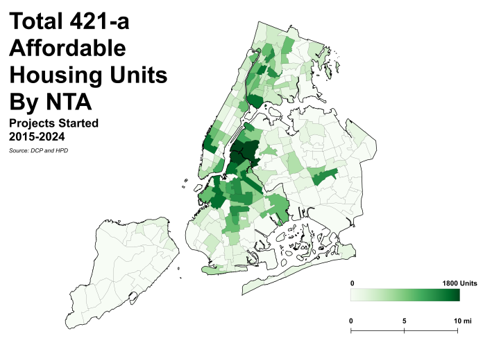 Most of the city’s newest housing is concentrated in only a few neighborhoods, like Williamsburg and Long Island City, putting extreme pressure on those areas to bear the weight of the city’s lack of housing. Affordable housing programs, such as 421-a, have done little to encourage housing construction outside of north Brooklyn and western Queens: