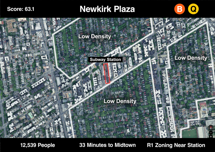 Newkirk Plaza is the first of several stations on this list along the B and Q line in Brooklyn. The Ditmas Park community is mostly comprised of single-family homes with driveways and front lawns. It’s not ideal for the city to have a neighborhood this lightly populated that’s only 30 minutes by train to Midtown.