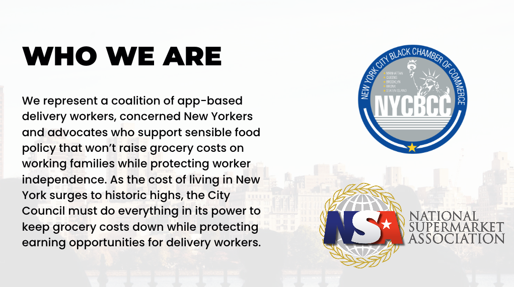 “The Black Chamber of Commerce is a member of New Yorkers for Affordable Groceries because we believe that as the cost of living in New York surges to historic highs,” the text read. “City Hall must do everything in its power to keep grocery costs down. As written, Intro 1135 would not only raise delivery costs, but it would also reduce access to flexible work — making it harder for Black families to secure affordable groceries and for workers to earn a living.”