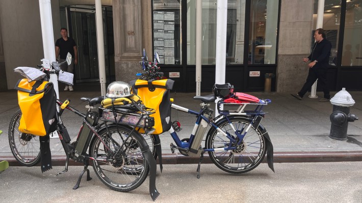 Perez is from Guatemala and now lives in the Bronx. He uses an e-bike with a battery life of about five hours, he told Streetsblog, but goes all the way home when he needs a charge.