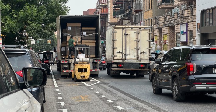 “Exactly what we predicted and warned about is happening — the unprotected bike lane is being treated as a parking lane by local drivers, forcing people riding bikes into dangerous traffic,” said Peter Beadle, a lawyer who argued to save the bike lane on behalf of two area residents and Transportation Alternatives.