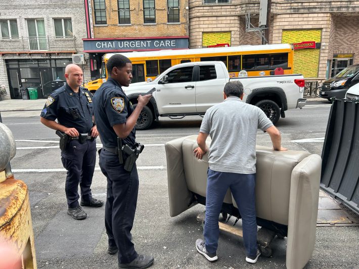 Both officers said they responded promptly to the 311 calls because they’re part of Mayor Adams’s recent quality-of-life initiative — a double irony, given that this initiative has led to a huge increase in criminal summons being issued to cyclists and that the protected bike lane was designed, in part, to eliminate the double-parking problem.