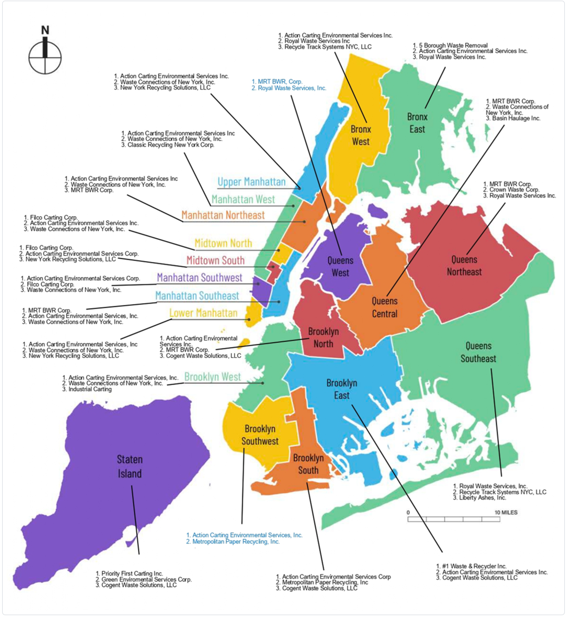 Three carters — Rubicon Global, Kings County Carting Corp., and 1 Take All Corp, — had no safety violations at all, but none was approved for the Commercial Waste Zone program. Those companies, however, also had very few staff or trucks, the report notes, while Action is a giant in the industry, second only to New York Recycling Solutions in workforce and fleet.