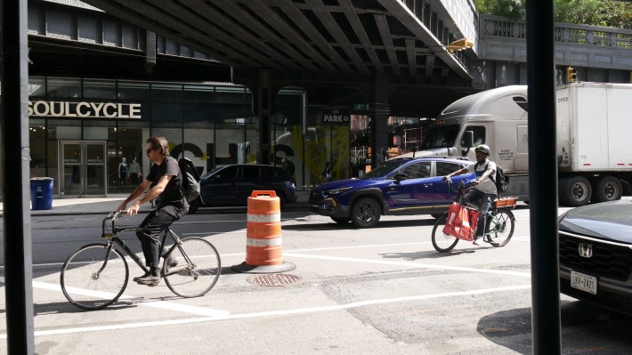 “The future of bike lanes is here, right before us,” then-Deputy Mayor for Operations Meera Joshi said at a press conference unveiling the wider lane in 2023. “Everyone benefits from narrower car corridors, more pedestrian islands, wider pedestrian spaces, and bike lanes.”