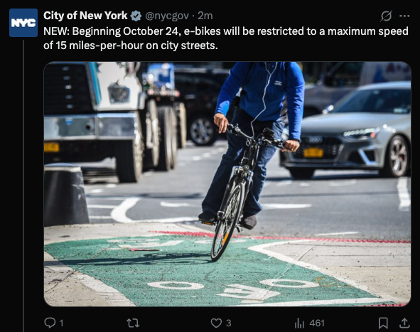 “Every New Yorker deserves to feel safe on our sidewalks and bike lanes, but Mayor Adams’s new 15 mph e-bike rule is completely backward,” said Furnas. “Throughout the rule-making process, hundreds of New Yorkers spoke up against this misguided change, but City Hall has decided to ignore them, misrepresent their comments in public documents, and move forward with their absurd war on biking.”