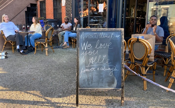 A sandwich board read, “We love you, Allie. Forever and always.”