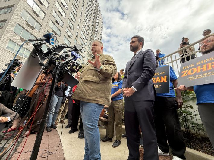 During the bus ride, Streetsblog reminded Mamdani that if he's sitting in the big seat in City Hall, he'll face intransigence from more than just his own agencies: He been endorsed by big shot Democratic Party bosses including Rep. Adriano Espaillat (D-Washington Heights) and Brooklyn Democratic Party Chair Rodneyse Bichotte Hermelyn, both of whom have opposed bus and bike priority projects.