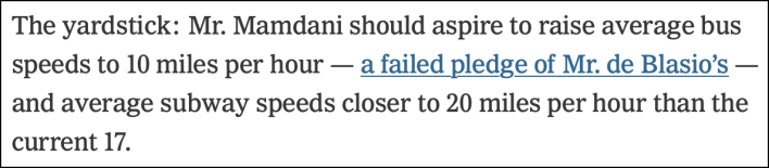 - The Times offered a list of "six ways" Mamdani could improve New York — one of which, raising subway speeds, he has no control over at all. If you want a real list of what Mayor Mamdani really should do on transportation, stick to the experts at Streetsblog: