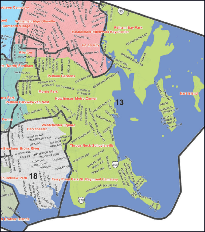 With much of the district out of reach of the city’s subway system, residents rely mostly on buses and personal cars to get around. A plurality of district residents, 46 percent, use personal cars to get to work, according to census data. Safe bike infrastructure is scarce, with just two protected bike lanes on the district’s western edge, on the Bronx River Greenway and White Plains Road.