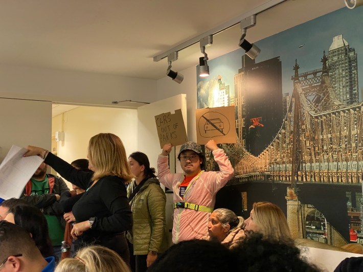 Dozens of locals — including the head of a nearby elementary school — packed into the unelected civic panel’s monthly meeting on Thursday night, asking board members to not go ahead with a plan to ask the Parks Department to return automobiles to the 0.3-mile strip between Myrtle Avenue and Park Lane South that the city closed off during the Covid-19 pandemic in 2020.