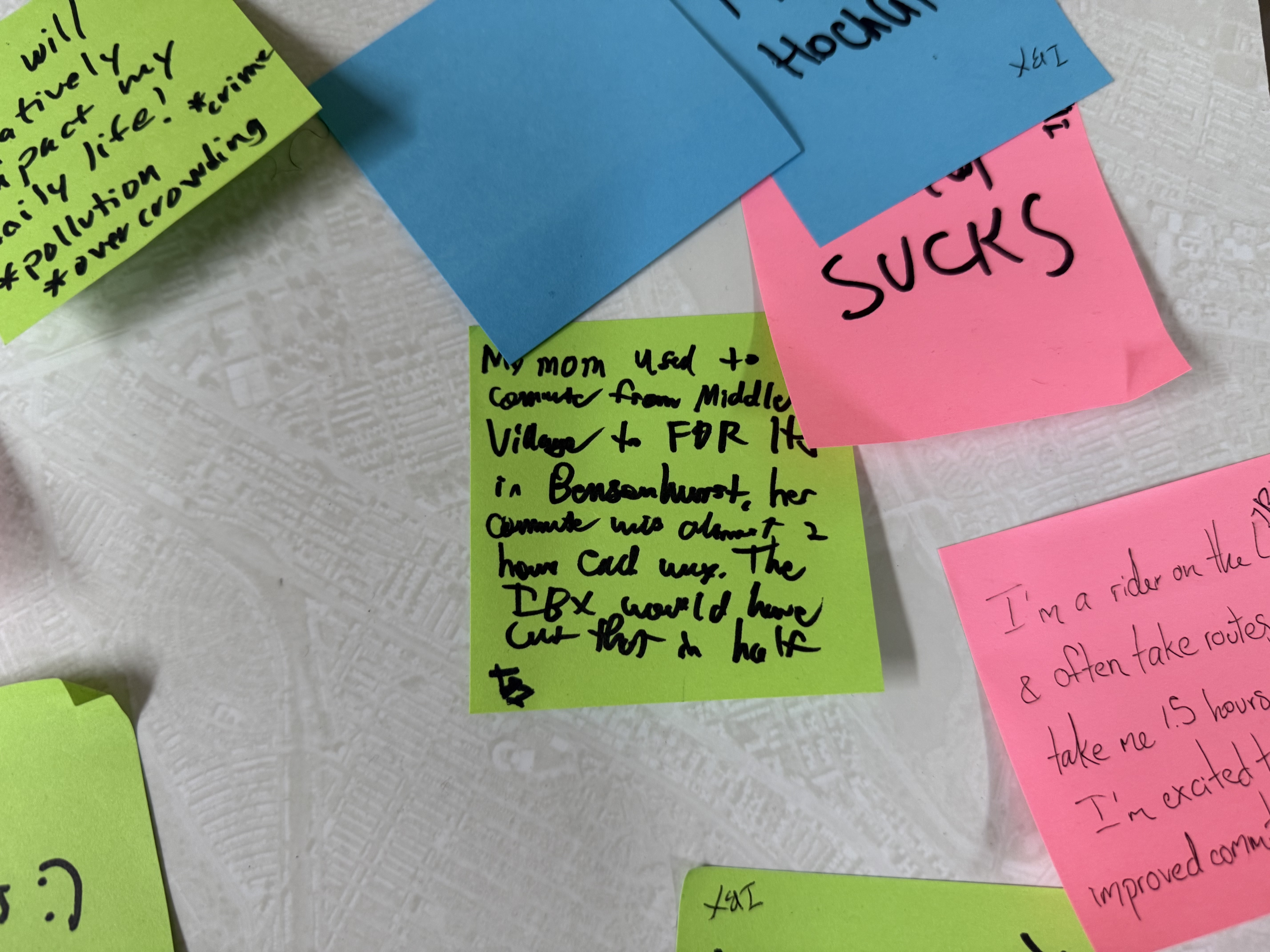 - “My mom used to commute from Middle Village to FDR High School in Bensonhurst. Her commute was almost two hours each way. The IBX would have cut that in half.”