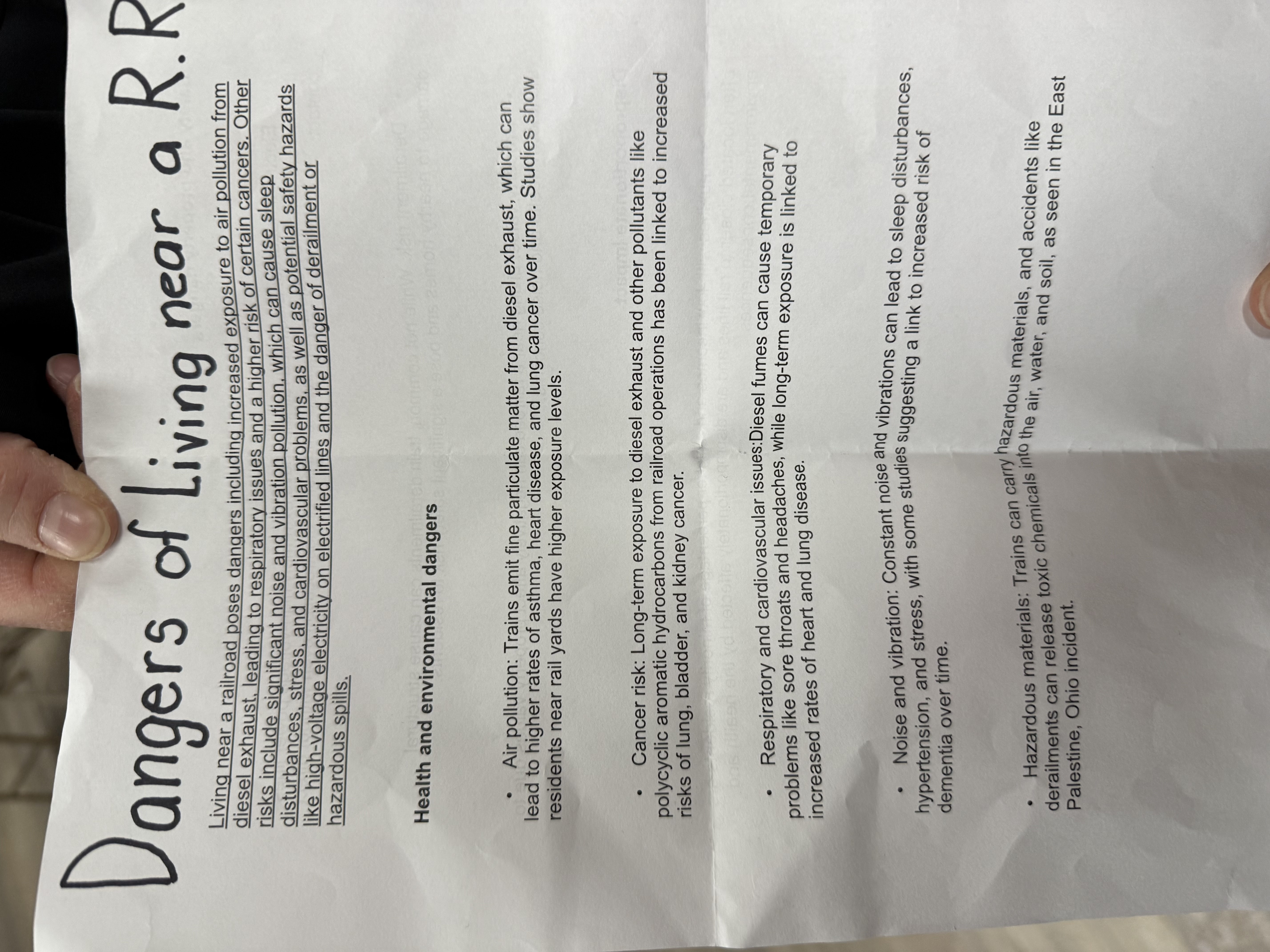 One IBX opponent distributed fliers decrying the dangers of living near a railroad, including dire warnings about diesel emissions and electrical infrastructure. The IBX will not run on diesel, and high-voltage electric lines are all around us in the city.