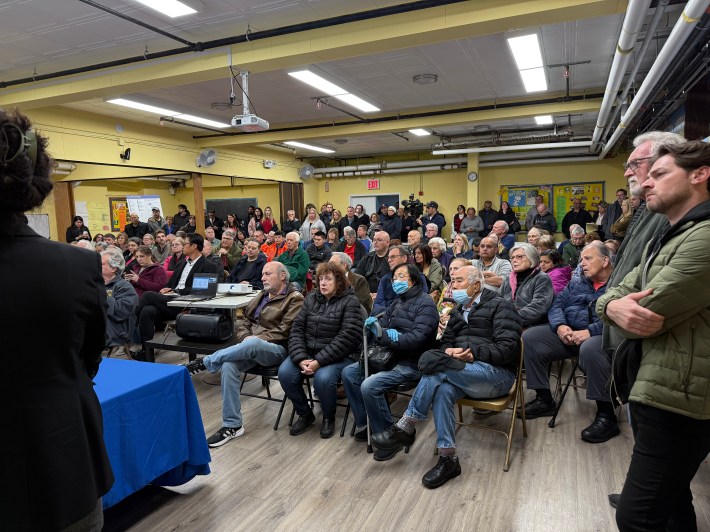 The idea of making it easier to reach Middle Village clearly put some attendees on edge. When an MTA representative explained how the evening would not have a formal question-and-answer period, the room erupted in protest. MTA town halls typically attract the same crowd found at community board meetings, especially those held to discuss minor rezoning proposals, where attendees often verbally abuse elected officials, developers, and their own neighbors.