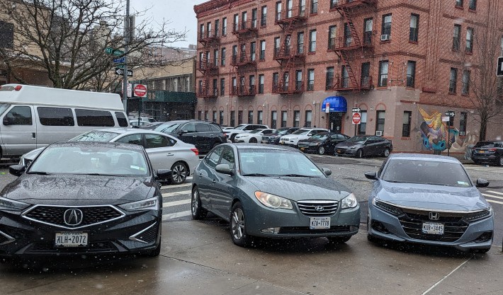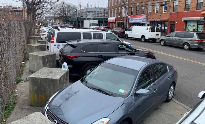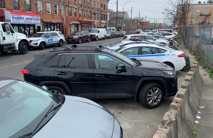 The result of self-enforcement has been that cars are everywhere, including on sidewalks, with little regard for pedestrians who need to get through, as Streetsblog has exposed for years, most graphically in its (March) Parking Madness series that ranked various precincts by the egregiousness of their illegal parking.