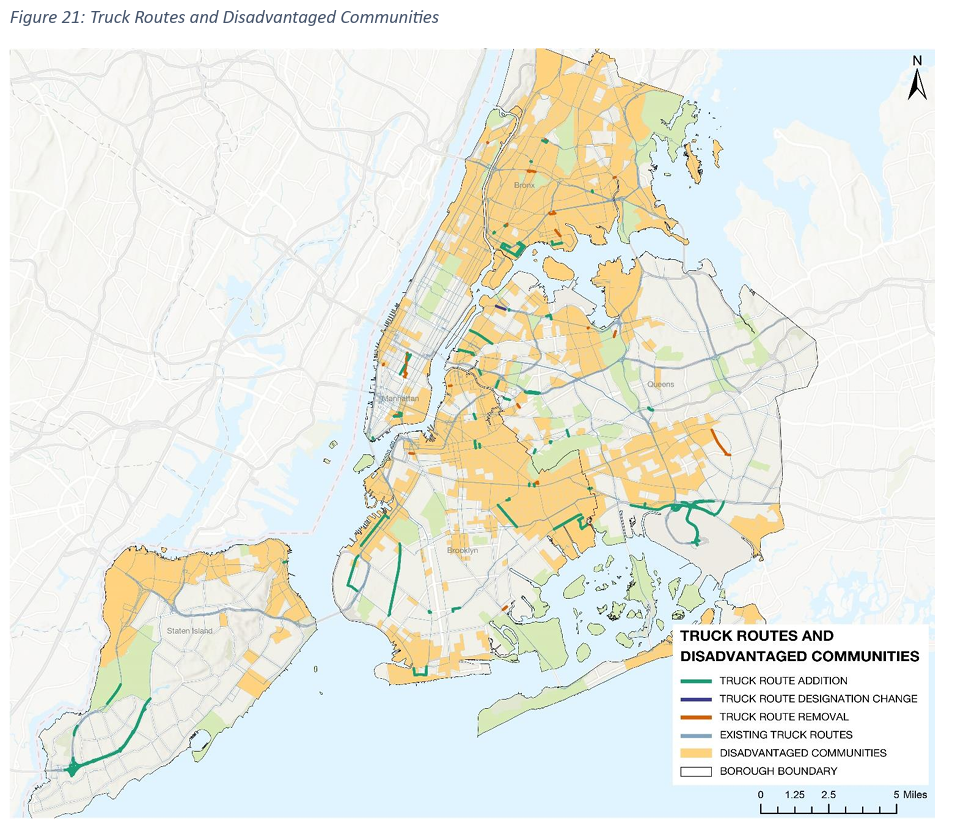 Manhattan and the Bronx will receive just two and four new miles of truck routes, respectively. The DOT also wants to remove approximately four miles of existing routes throughout the city.