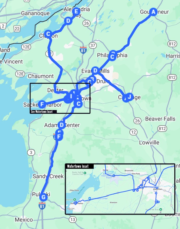 The Northern Connector hits Fort Drum, Evan Mills, Antwerp by request and Gouverneur in St. Lawrence County and has an expected daily mileage of 342 miles.