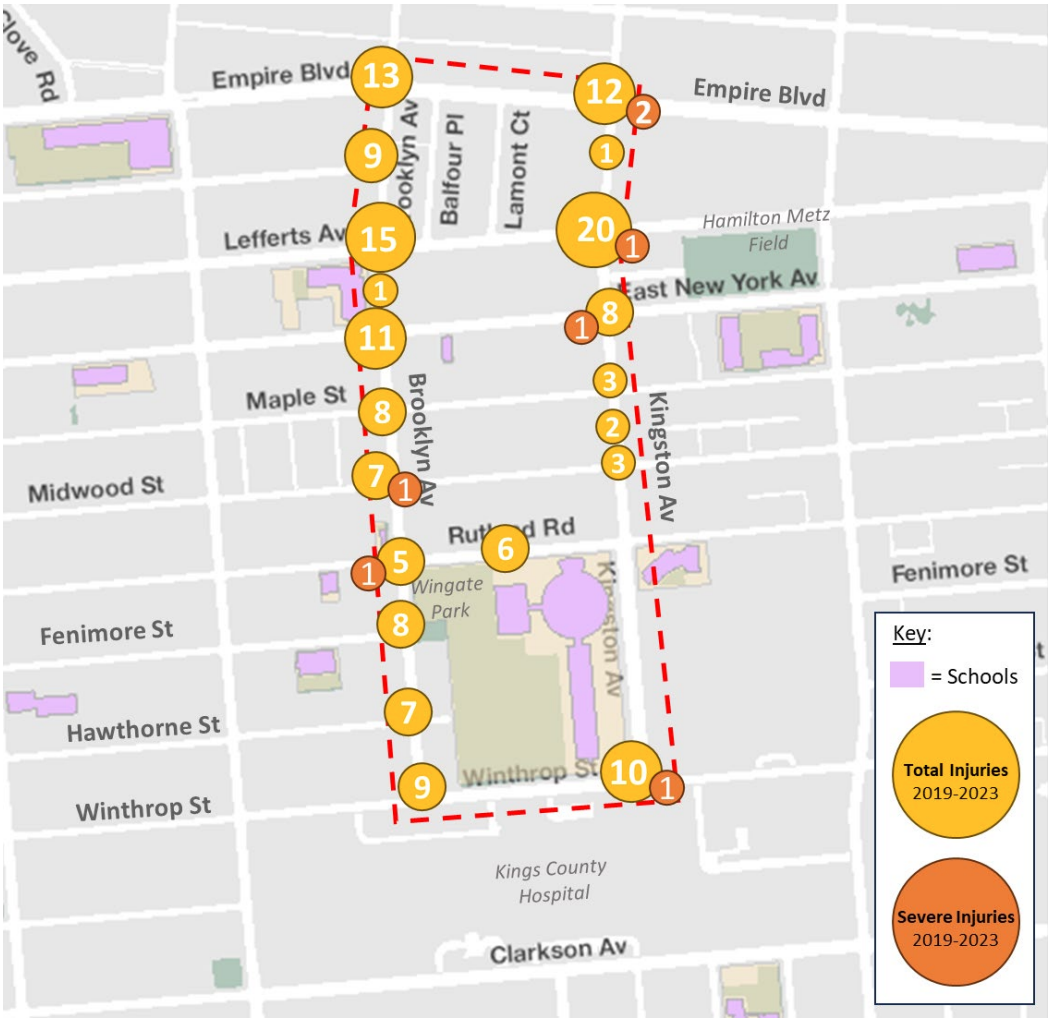 Lefferts Avenue counted the most crash injuries in the project corridor – yet will remain unsafe until 2026.