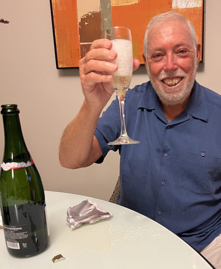 He promised to toast the start of congestion pricing and, finally, he did! Courtesy of Sam Schwartz