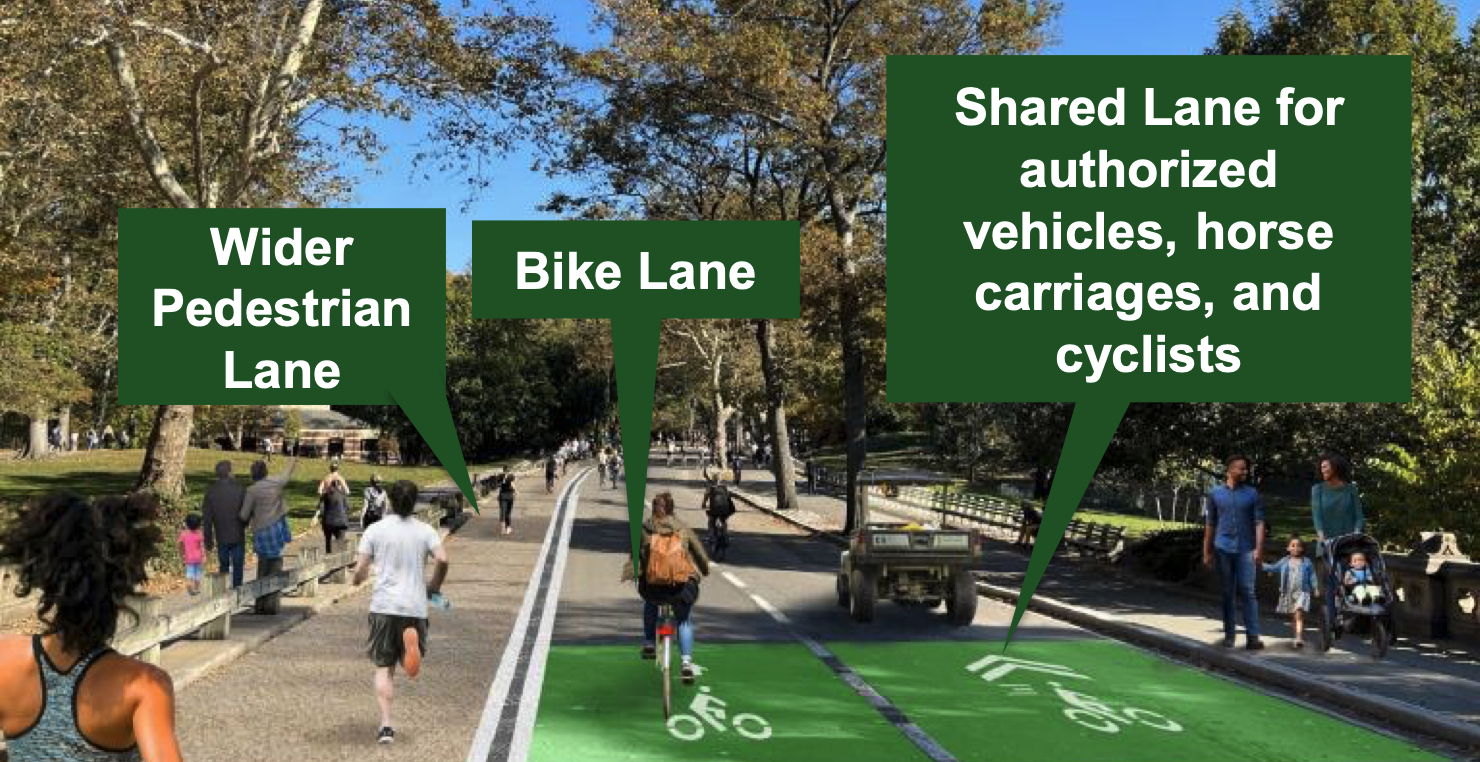 “Since cars were permanently banned on Central Park’s drives in 2018, it’s been a long time coming that the city rethinks the park drives to center around people — not vehicles," said DOT spokesman Vin Barone. "DOT’s ongoing redesign expands pedestrian and cycling space while better separating those walking from faster users, with more work to come to enhance safety for everyone enjoying this iconic park.”