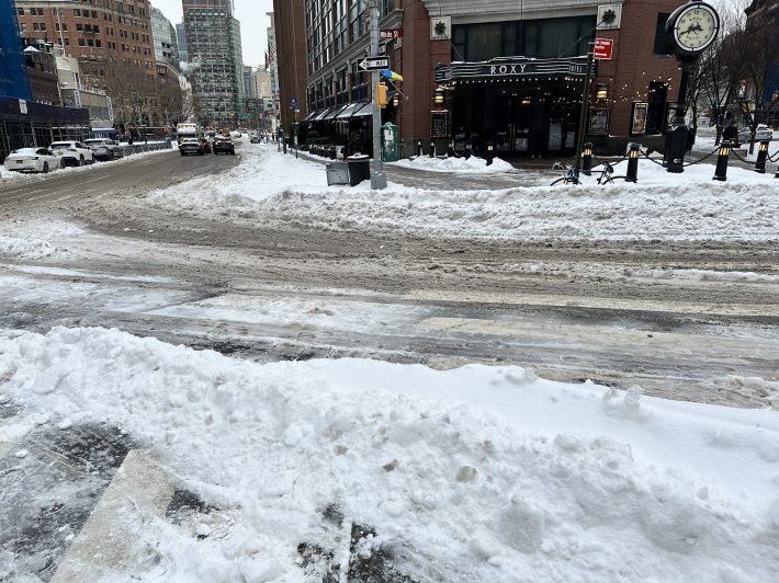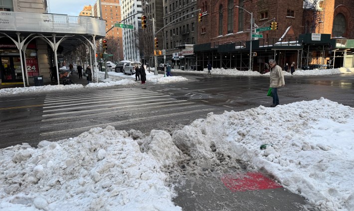 Here’s an unshoveled curb cut on the Upper West Side mid-afternoon on Monday: