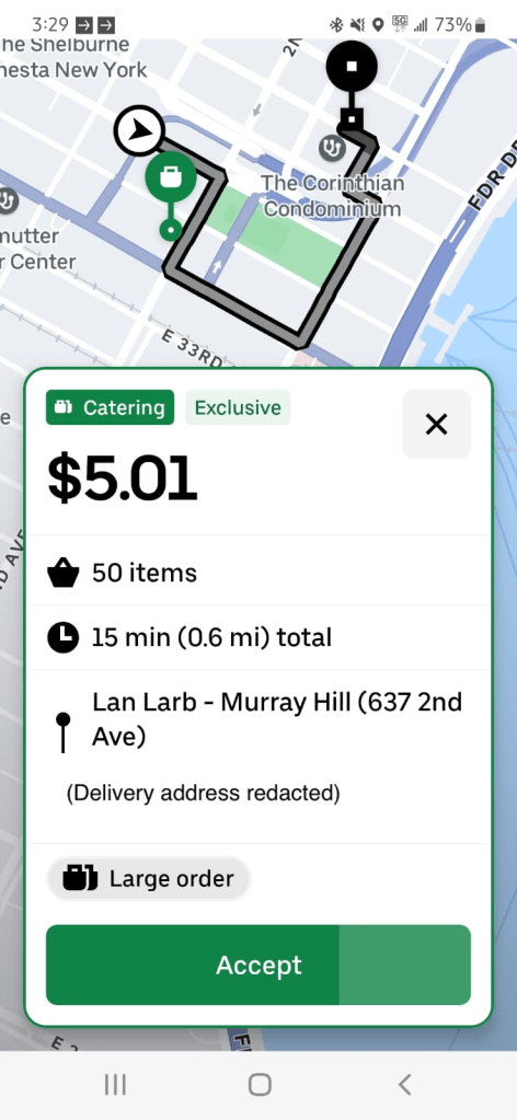 Ki told Streetsblog how he biked more than four miles for a Grubhub delivery on Friday only to have the company tack on another delivery for a paltry $3. In one case of egregious under-tipping, an UberEats customer tipped Ki just $5 for an order that totaled more than $500 for 50 items.