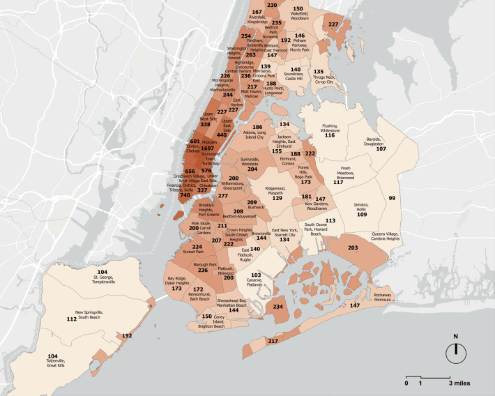 Some areas in the outer boroughs, like University Heights in the Bronx or Sunset Park in Brooklyn, are busier than parts of Manhattan, such as East Harlem.