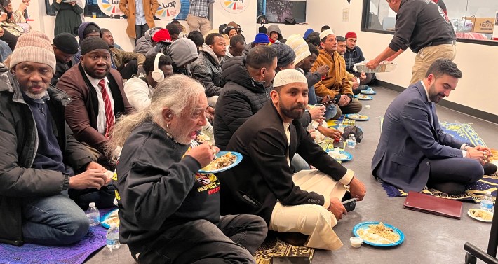 - And, finally, our own award-winning reporter Sophia Lebowitz was invited to break the Ramadan fast with Mayor Mamdani and about 100 delivery workers at the Workers Justice Project headquarters in Williamsburg. All we got are these pics: