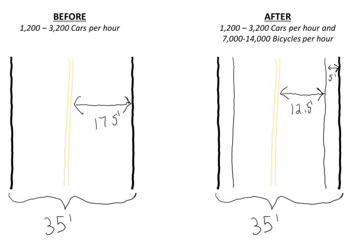 Bike infrastructure, in contrast not only adds value to roadway assets (by expanding use cases and decreasing crashes), but can be installed at virtually no cost without materially impacting the driver experience.