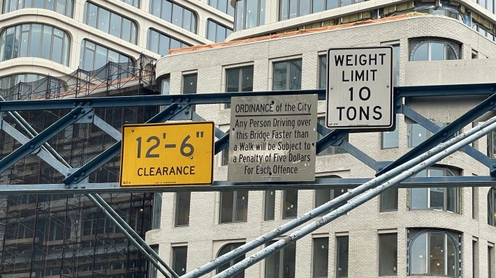 Of the bridges that DOT operates, the Carroll Street Bridge was the quietest. It supports traffic in one direction only, and the last time anyone counted, there were just 1,000 crossings per day. There are four other bridges over the Gowanus Canal, all of which support more volume. And, besides, there's a historic sign on the Carroll Street Bridge barring drivers from exceeding the speed of "a walk." (The fine is $5.)