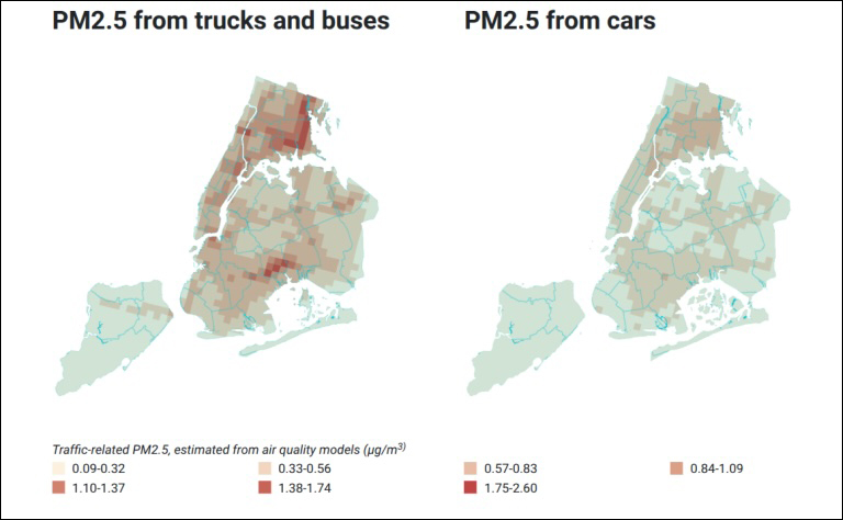 Over the whole area, the average increase of PM2.5 particulate matter was 0.22 micrograms per cubic meter — an increase of 1 to 10 percent, according to air quality monitors run by the city Department of Health and Mental Hygiene. It’s a small spike, but a significant one for residents of The Bronx, who have historically suffered more vehicle-based pollution than other parts of the city.